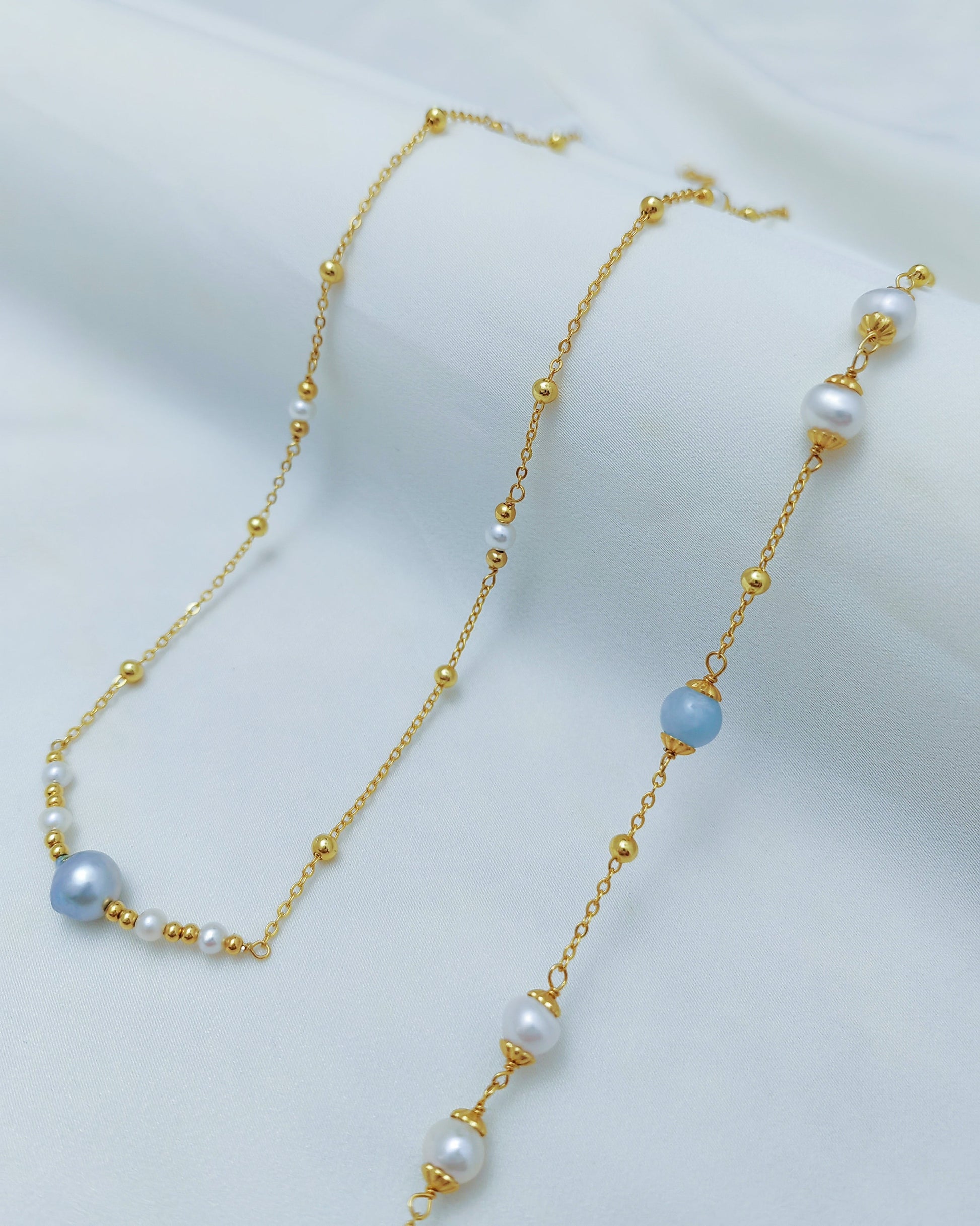 Dusty Blue Pearl Set (Bracelet & Necklace)